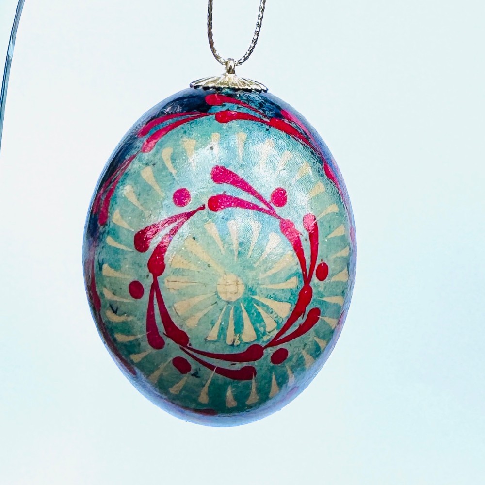 Hen Eggshell, Ukrainian Pysanka Method, 2.5 in plus hanging cord
