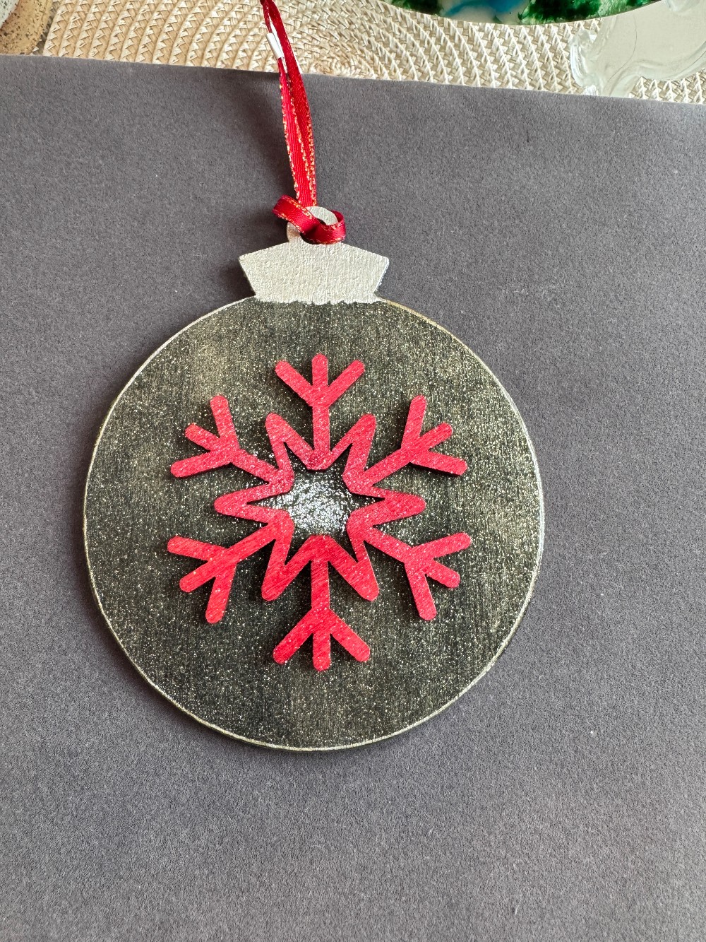 Pieces of broken pysanka eggshell are used to create a mosaic inside a wooden form and encased in resin. Decorative snowflake cutout on the back. 3.5in x 3.5 in. Hangs from ribbon. Packaged in a organza bag, ready for gift giving, or adding to your tree.