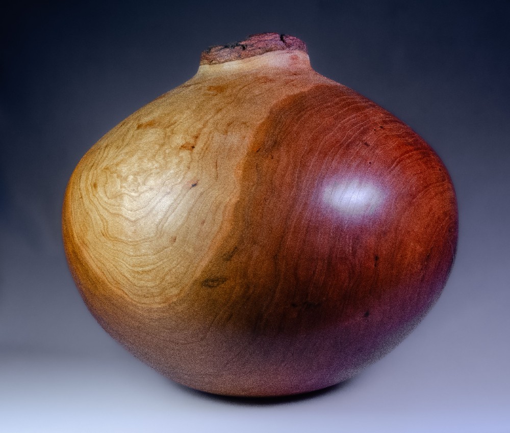 Cherry Hollow Form with bark-on natural edge mouth 9" x 9.5"