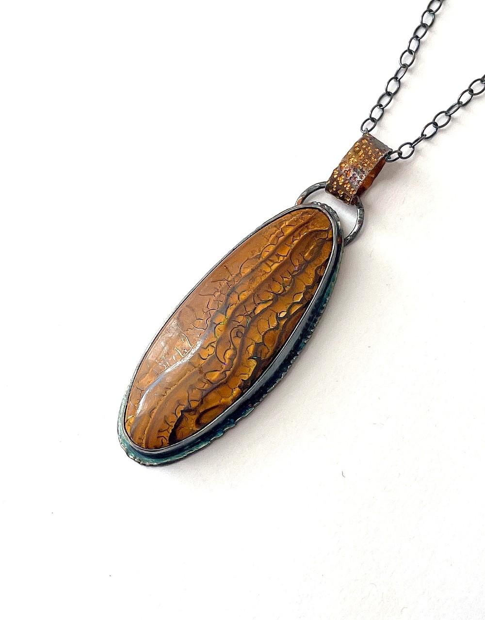 Boulder opal silver necklace
